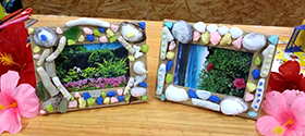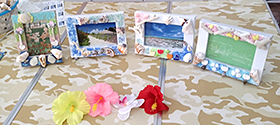 | 内 容 | フォトフレームの枠に、サンゴ、ビーチグラス、貝殻、砂などでデコレーションしてオリジナルフォトフレームを作ります。 |