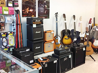 ギター弦、ストラップ、シールド、ギターピック、チューナーなどの消耗品、ギターやアンプなどを取り揃えて、皆様のお越しをお待ちしております。
